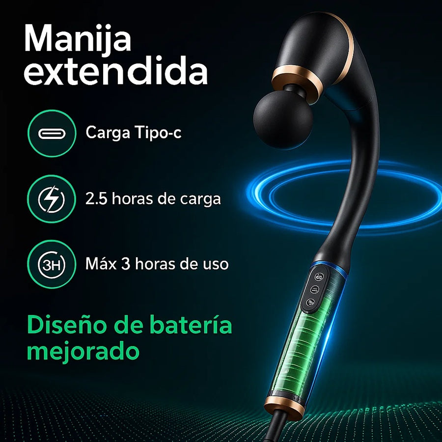 Gracias a su diseño ergonómico de 120°, puedes masajear tu espalda media y baja, hombros y cuello con total autonomía. Olvídate de posturas incómodas o de pedir ayuda. ArcFlex™ se adapta a tu cuerpo.